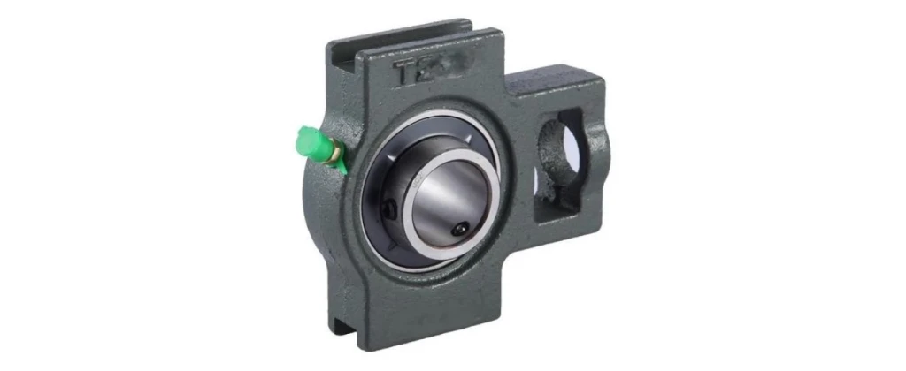 Unidades de rodamientos de bolas con soporte tensor de un rodamiento de inserción montado en un soporte de material compuesto o de fundición de metal. Las unidades suelen estar montadas en marcos de soporte tensor y se ajustan con un tornillo de ajuste. Además de formar parte de una unidad, algunos soportes tensores para rodamientos de inserción están disponibles como componentes separados